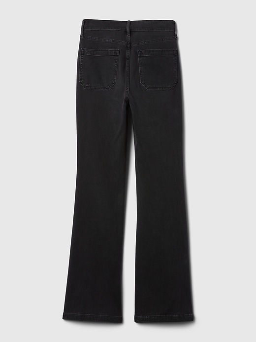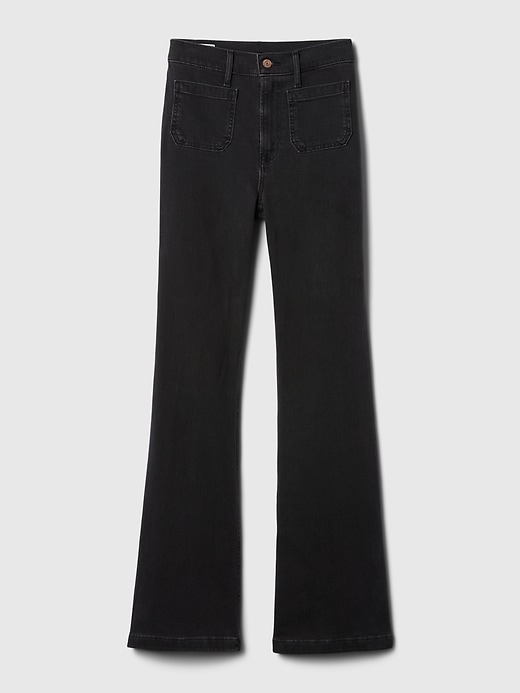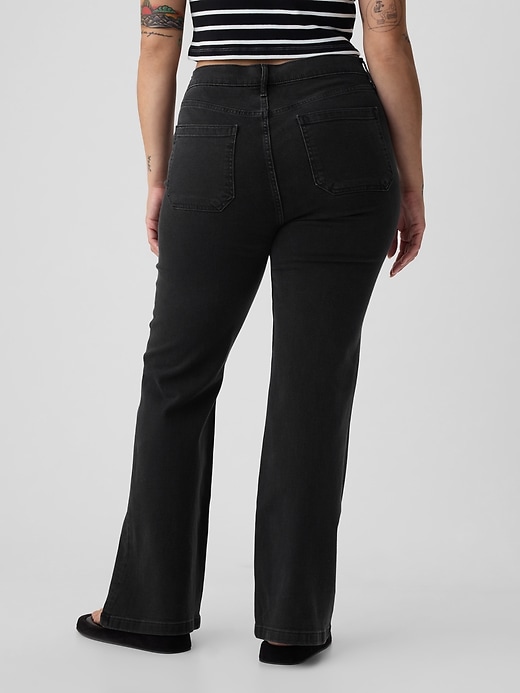 - Fit: Snug & flattering through the hip & thigh with a flared leg.