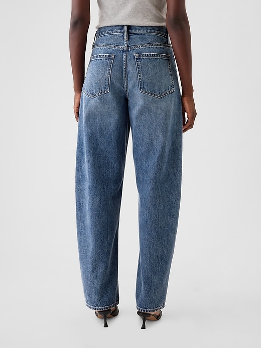 - Fit: A full-length barrel jean that’s fitted at the waist with a relaxed leg and tapered ankle.