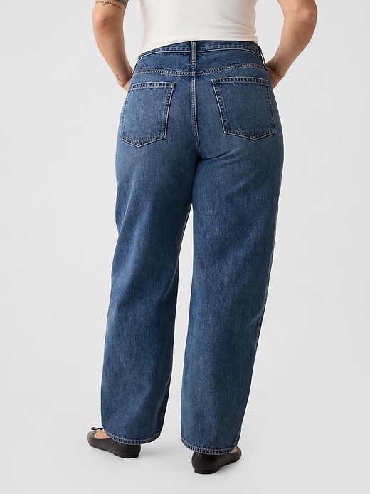 - Look: A classic five-pocket barrel jean in a medium indigo wash.