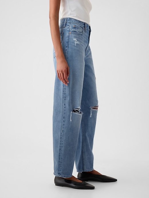 - Fit:A full-length barrel jean that’s fitted at the waist with a relaxed leg and tapered ankle.