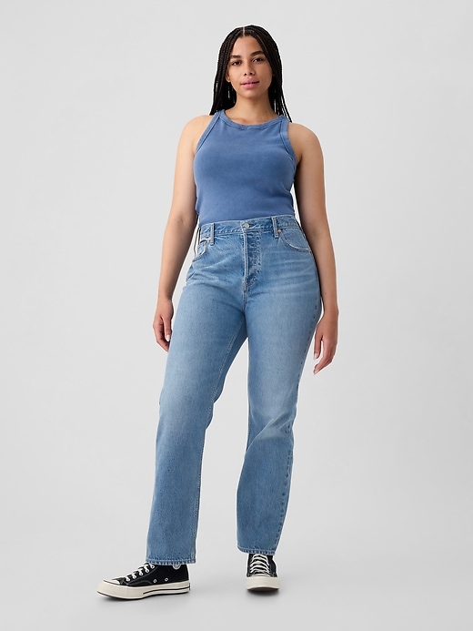 - Look: A classic five-pocket straight jean in a medium indigo wash.