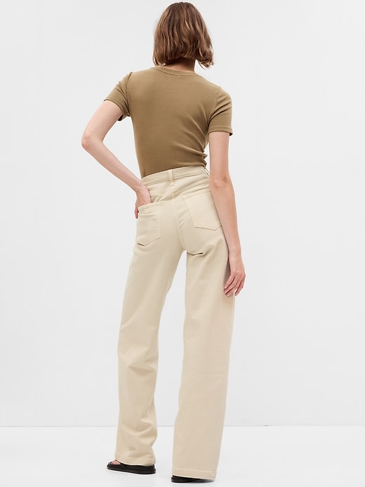 - Fit: Fitted in the waist & hips with a full-length, relaxed wide leg.