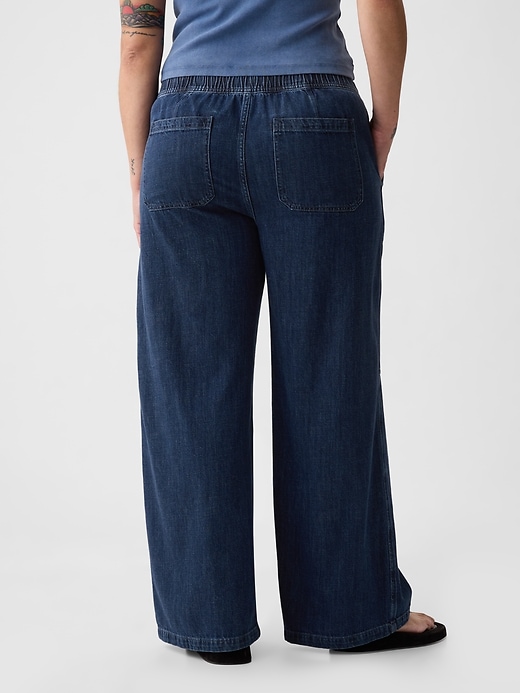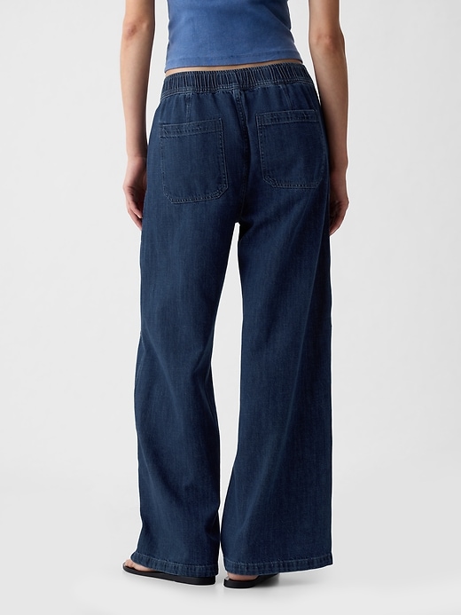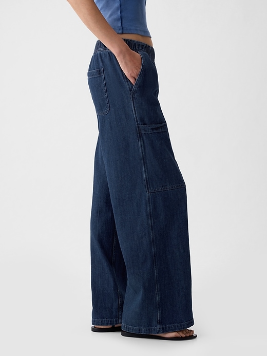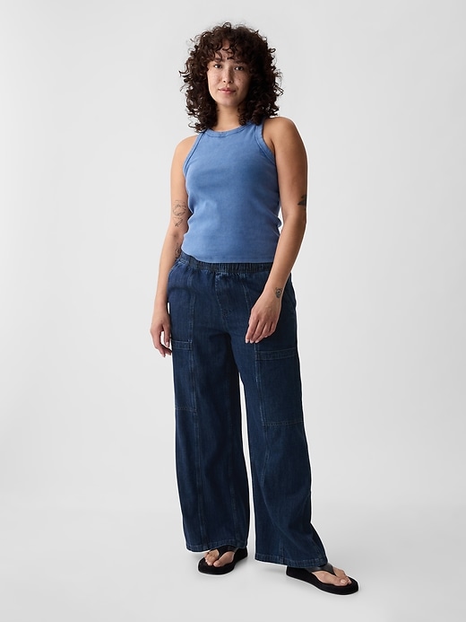 - Look: A loose wide-leg utility jean in a dark indigo wash.