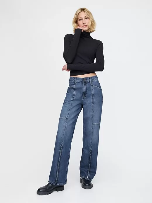 - Fit: A full-length loose jean that’s fitted on the waist & relaxed all the way down.