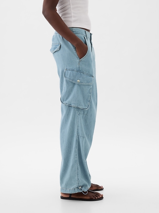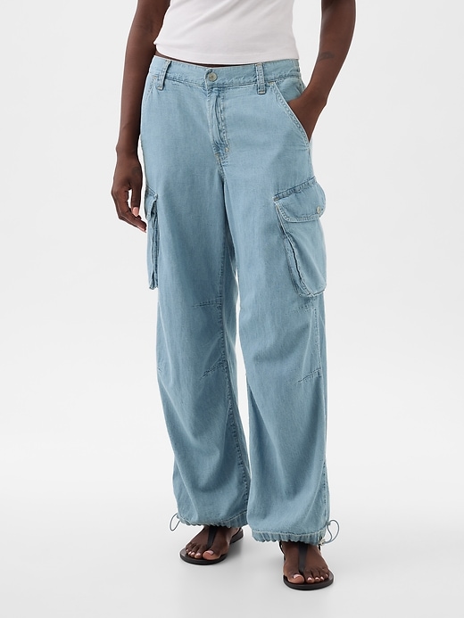 - Look: A loose, wide-leg cargo jean in a medium wash.
