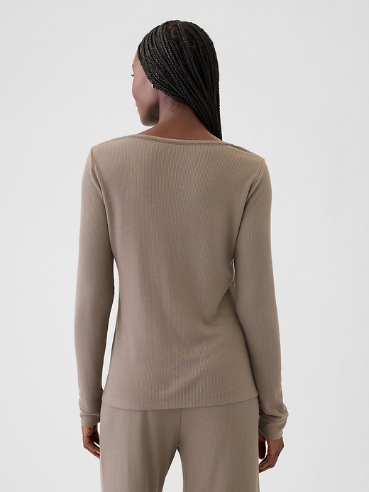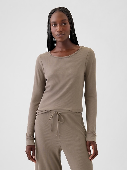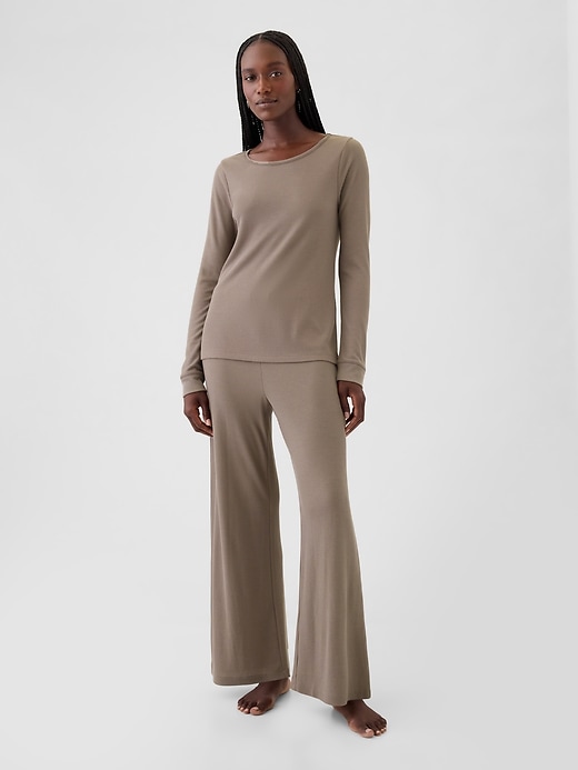 - Soft modal-blend waffle-knit pajama T-shirt.