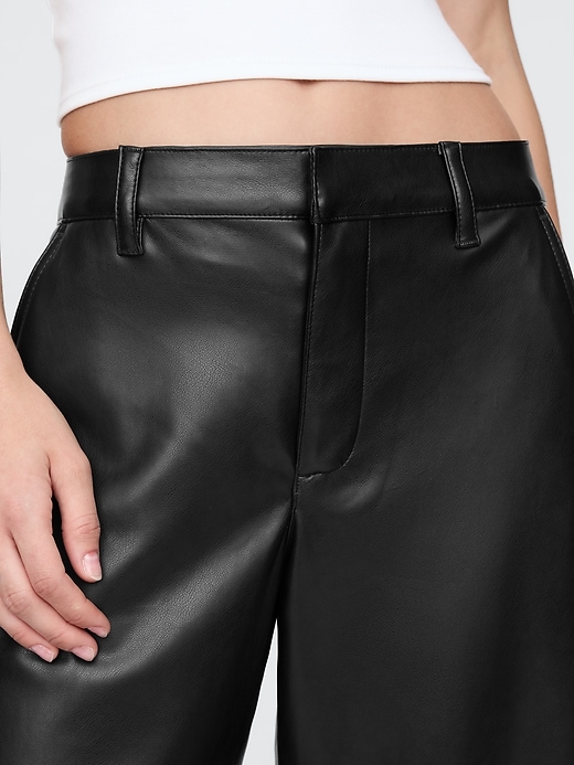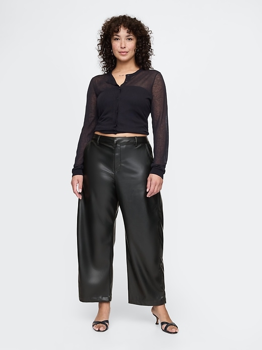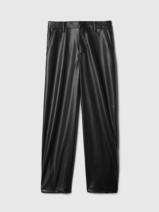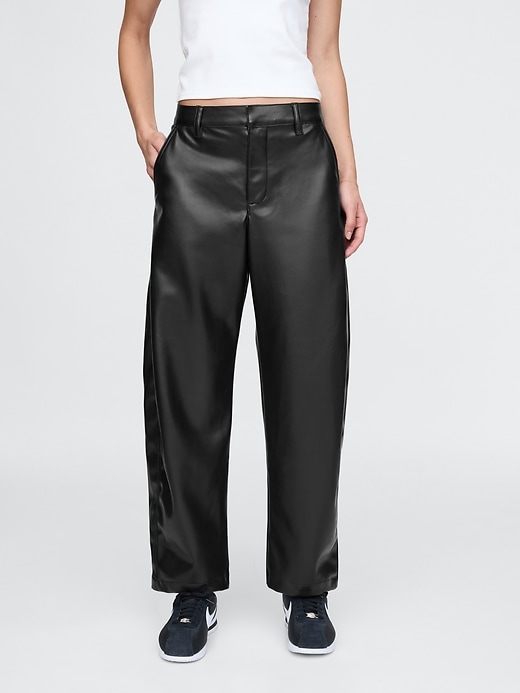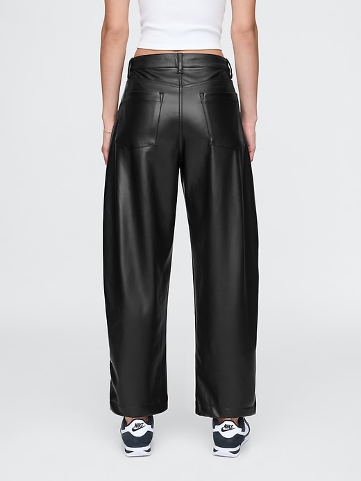 - Smooth vegan leather barrel pants.