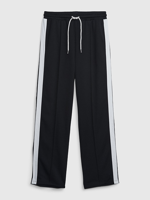 - Soft polyester, straight leg track pants.