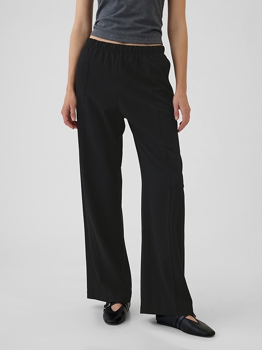 Wide-Leg Seamed Pull-On Pants