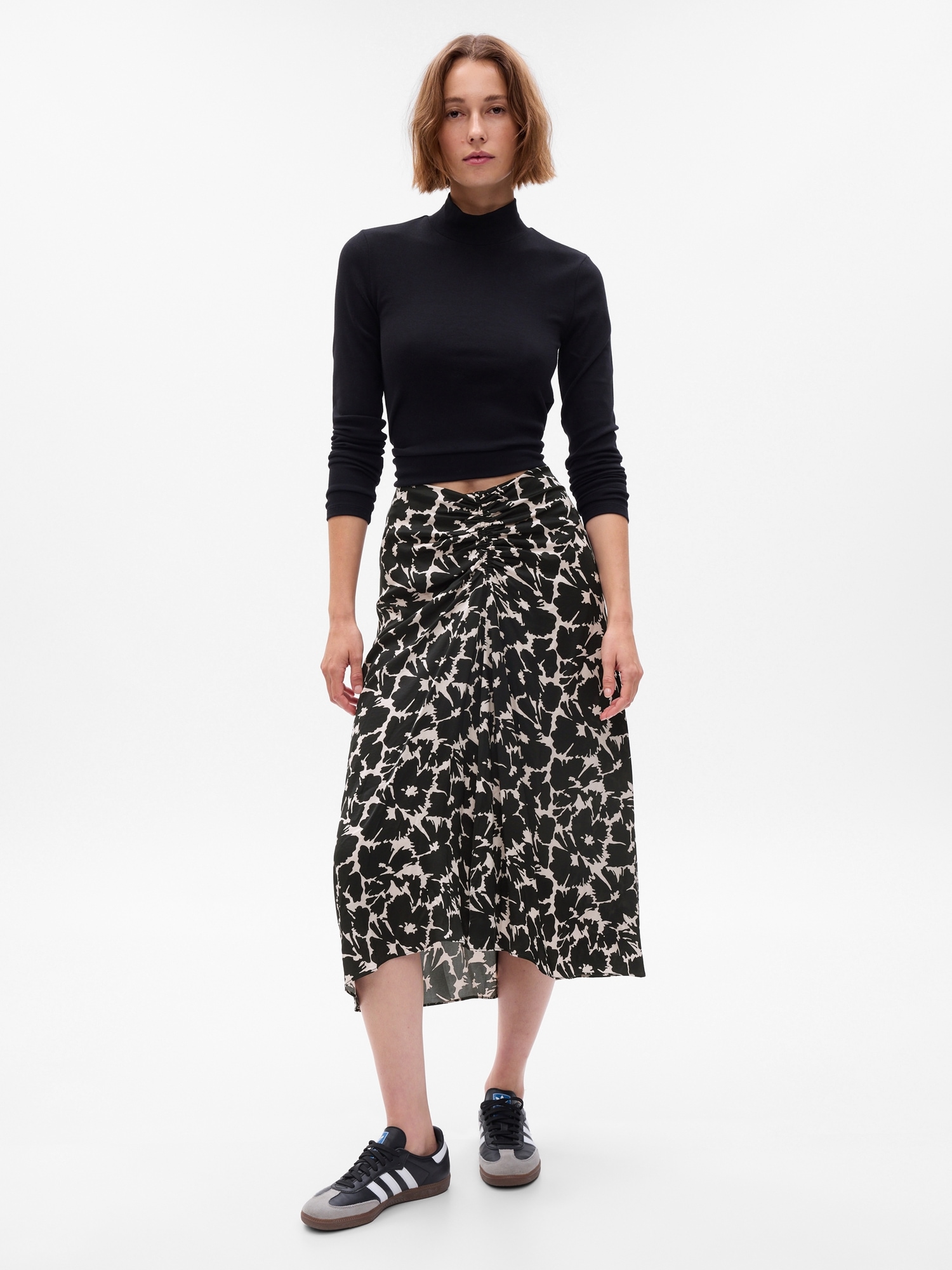 Ruched Floral Midi Skirt