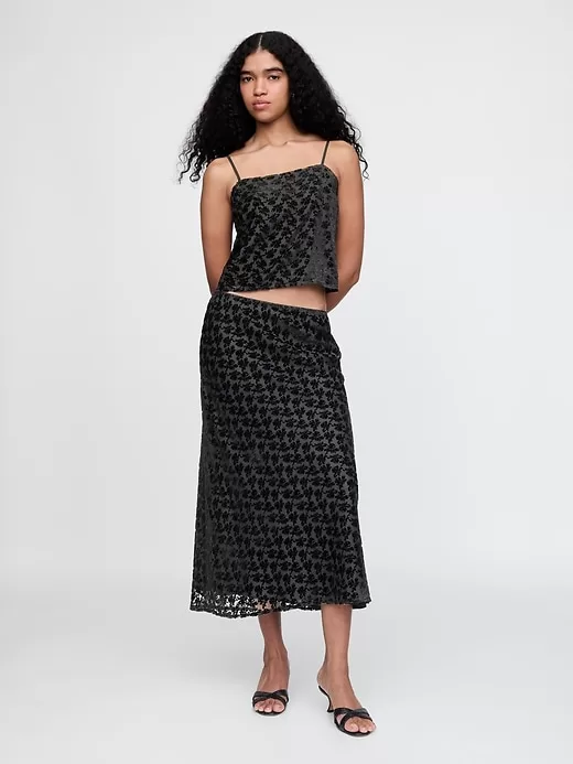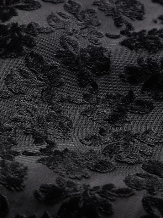 - Allover burnout velvet detailing.