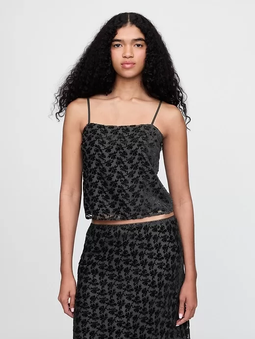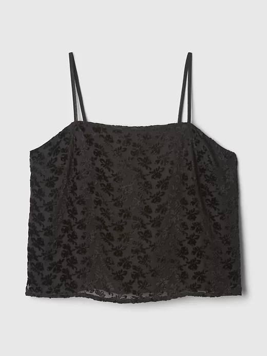 - Soft rayon-nylon blend cropped shell camisole.