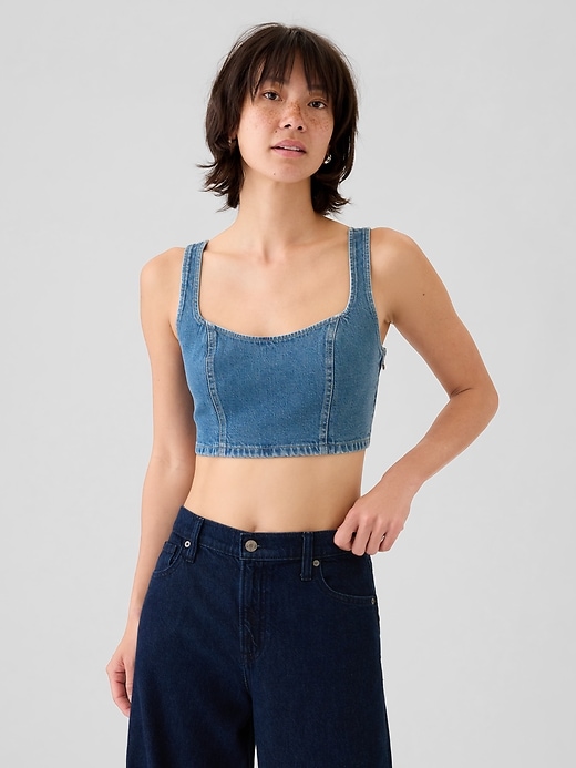 - Soft, low stretch, ultra-cropped denim brami.
