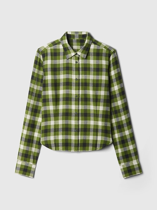 - Soft cotton, fitted and cropped flannel plaid shirt.