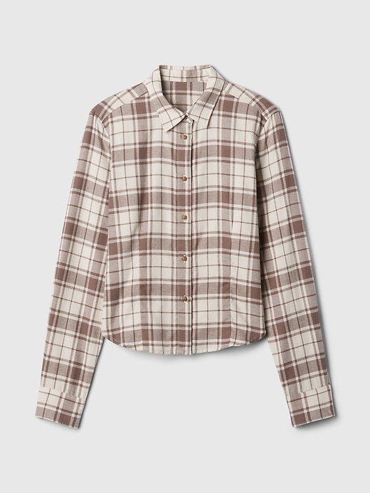 - Soft cotton, fitted and cropped flannel plaid shirt.