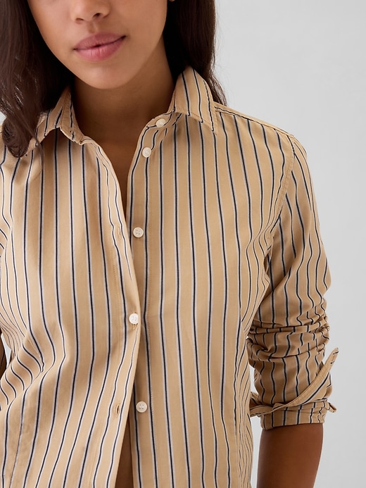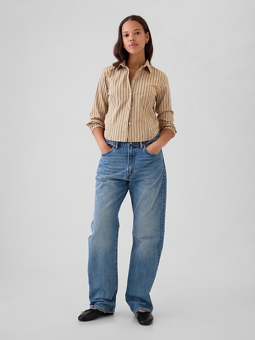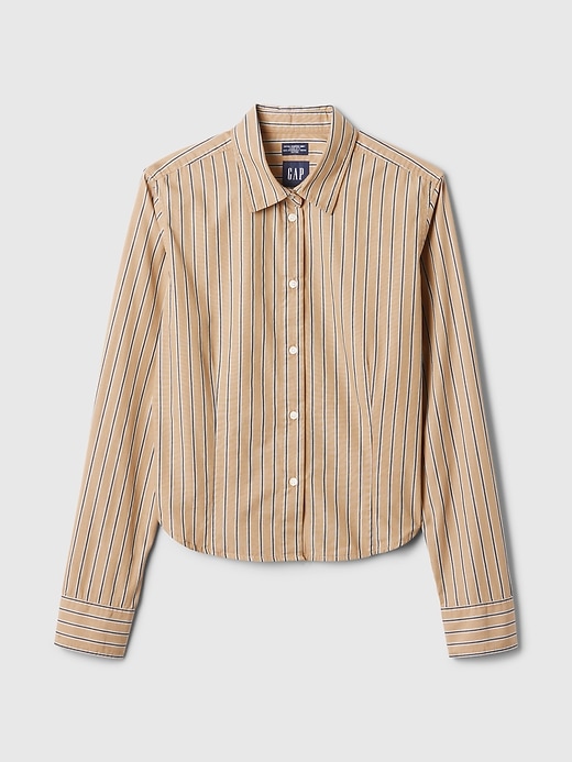- Soft cotton poplin fitted, cropped shirt.