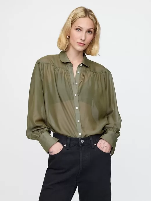 - Soft, sheer oversized shirt.