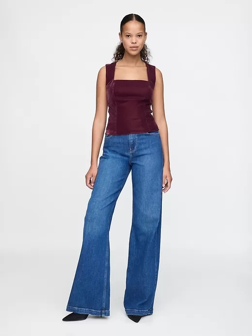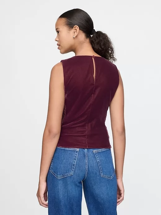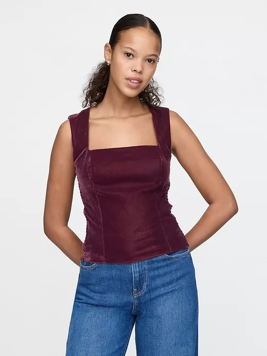 Recycled Velvet Square-Neck Cropped Top