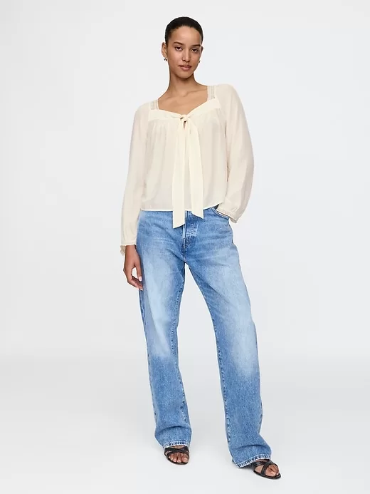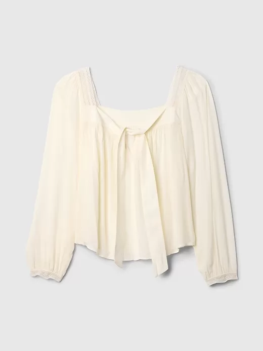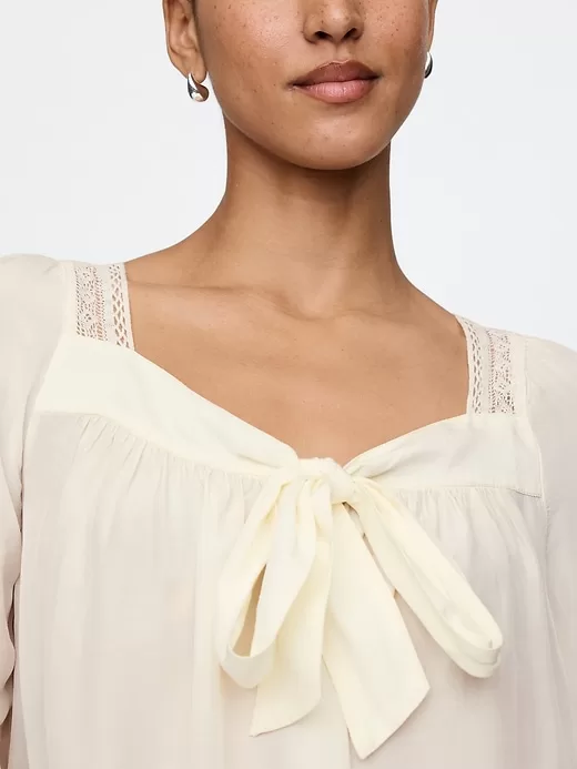 - Square neck with bow detail at chest.