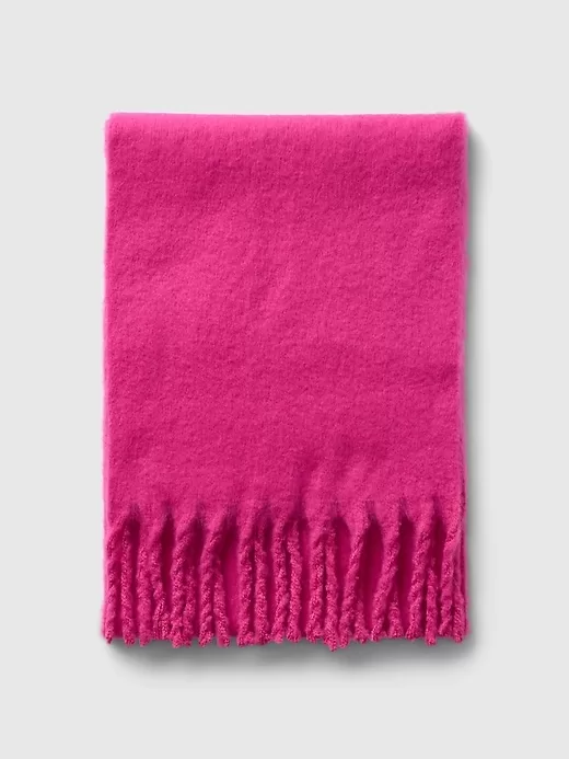 - Soft, feathered chunky knit scarf.