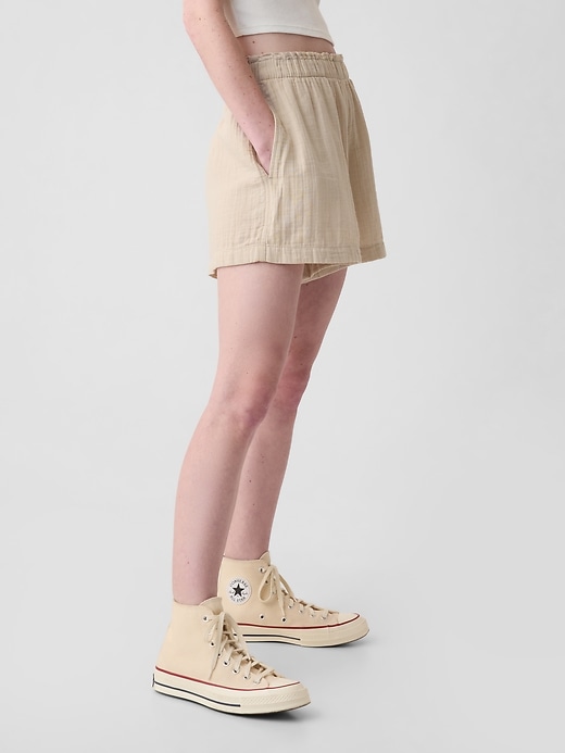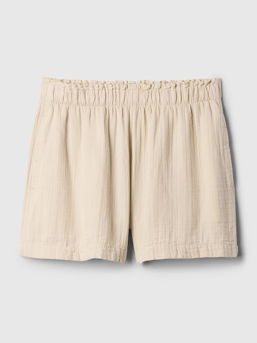 - Soft cotton crinkle gauze pull-on shorts.
