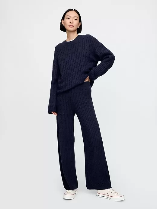 CashSoft Cable-Knit Sweater Pants