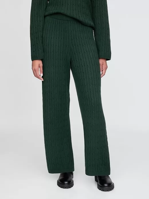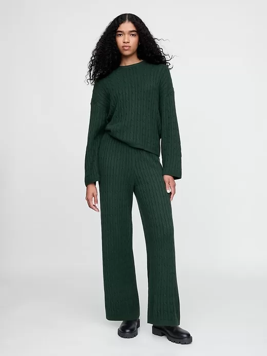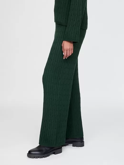 CashSoft Cable-Knit Sweater Pants