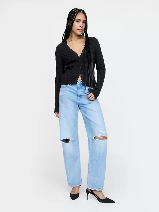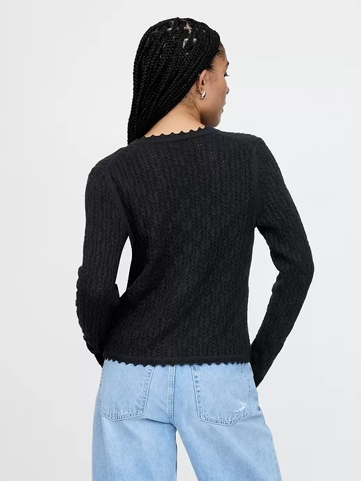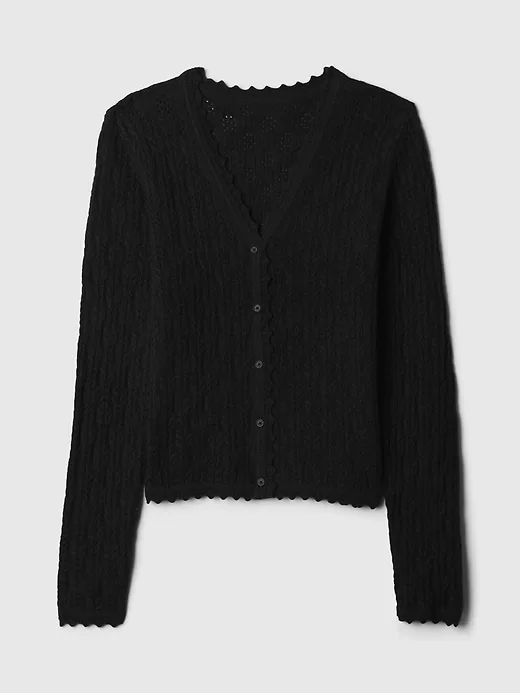 - Supersoft cotton-blend pointelle cardigan with a slight crop.