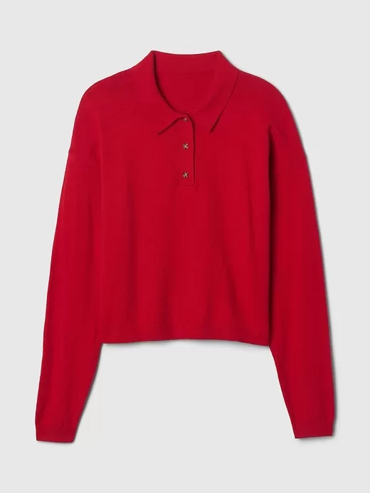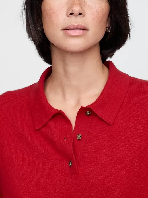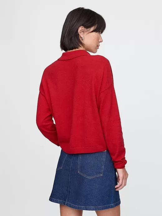 - Supersoft cotton-blend polo sweater.
