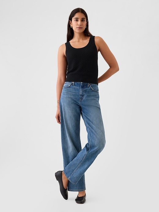 - Soft knit pointelle sweater tank top.