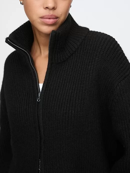 - Soft knit full-zip cardigan.