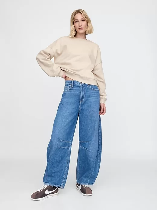 - Long sleeves with drop shoulders and banded cuffs.