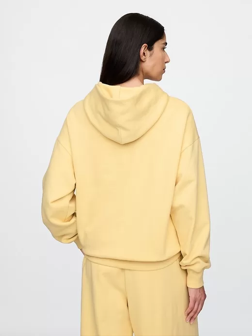 - Soft cotton-blend fleece hoodie.