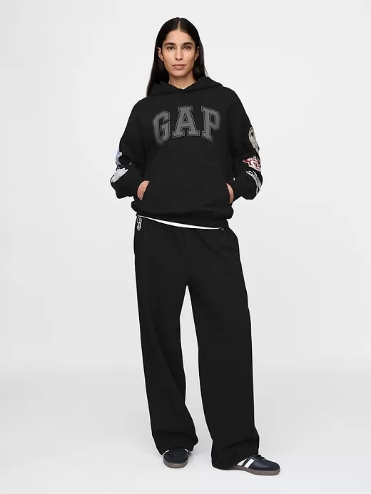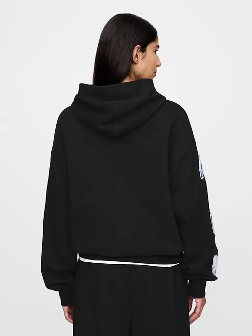- Soft cotton-blend fleece hoodie.