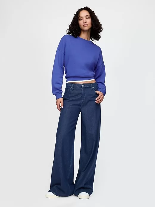 - Slightly cropped, soft cotton-blend pullover sweatshirt.