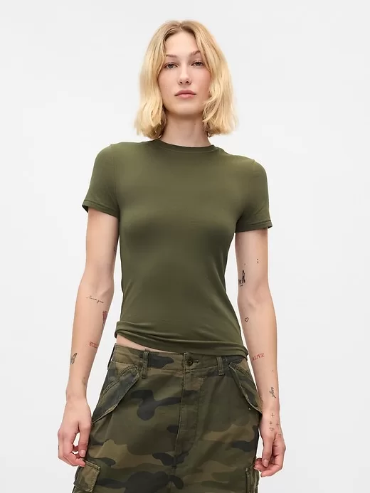 Our seriously smooth, body-hugging tee. Cut from fine cotton jersey mixed with comfort stretch.