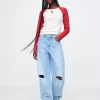 - Long raglan sleeves.