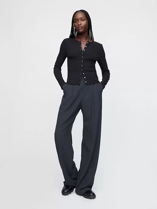 - Soft, stretch wide-ribbed-knit T-shirt.