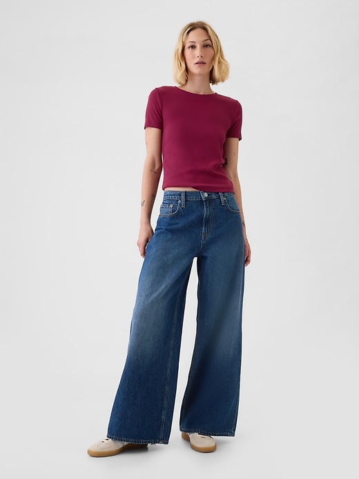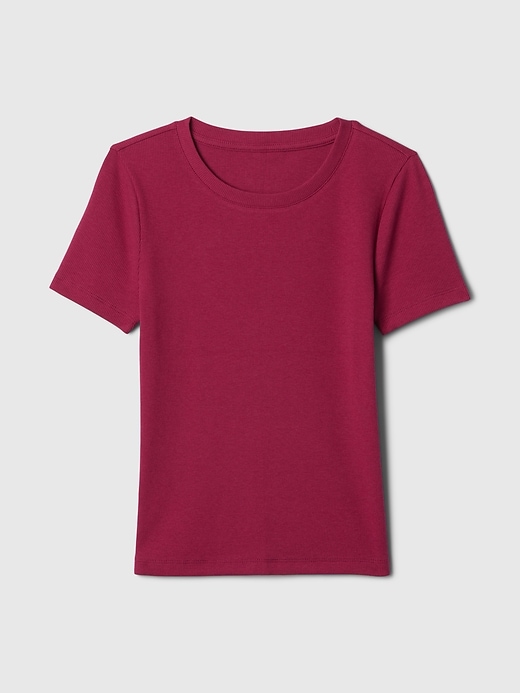- Soft cotton-blend ribbed-knit slightly cropped T-shirt.